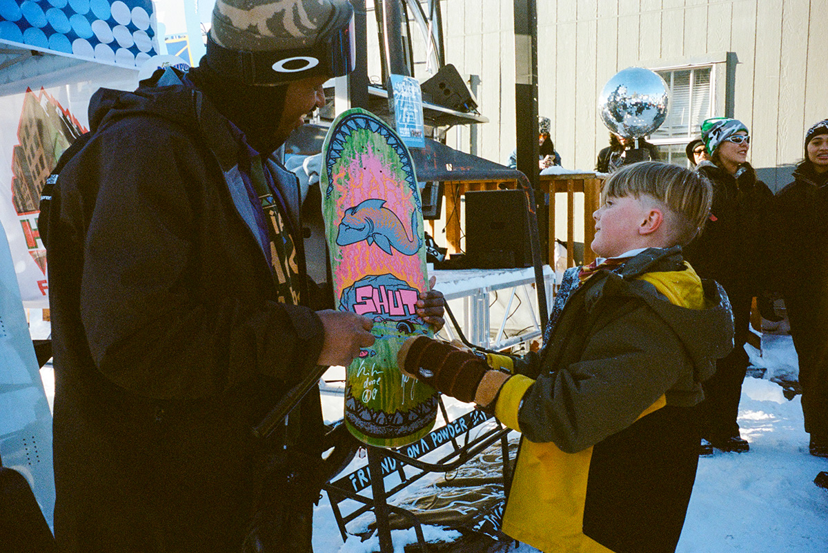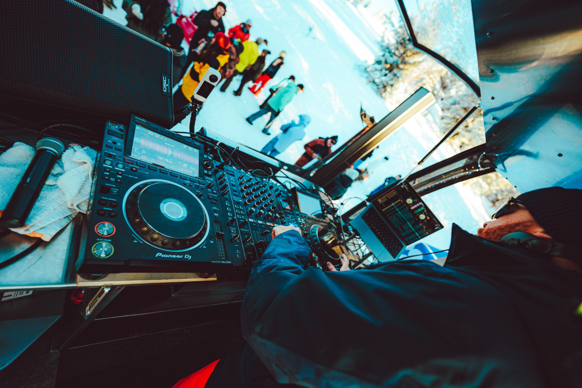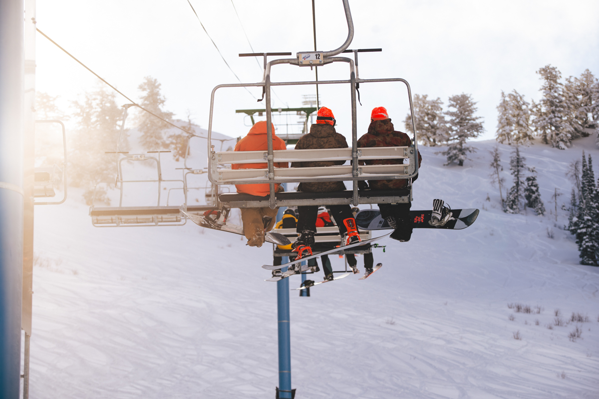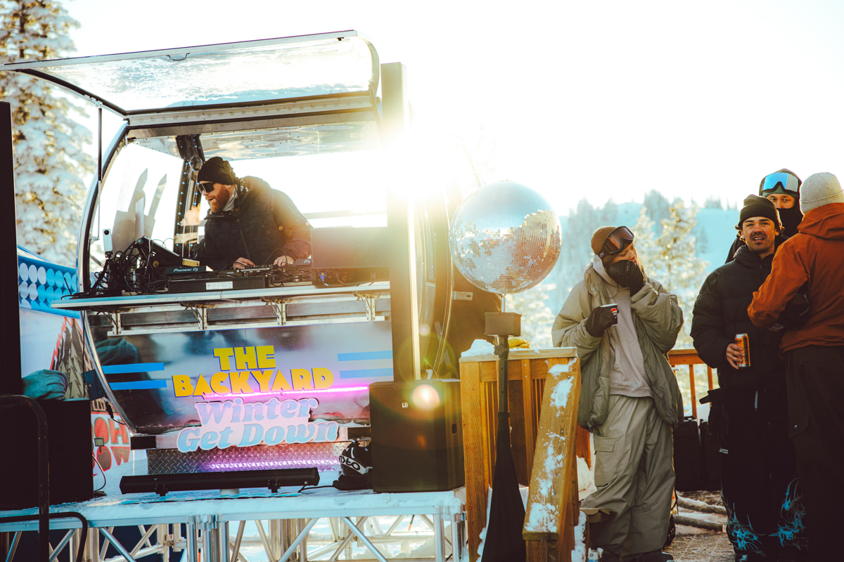 Weekend One got things started at Powder Mountain’s brand new Backyard Après Sessions area, complete with a gondola DJ booth, fire pits and refreshments from the longtime locals’ favorite Powder Keg. NYC duo Angel + Dren teamed up with SLC’s DJ Flash & Flare and DJ Matty Mo to set the vibes right and get the bodies moving for a proper post shred throw down. Our man Trevor Andrew aka Gucci Ghost showed up to rip some laps and bless a vintage 1972 Timberline chairlift with some original artwork to be auctioned off during the Hoods To Woods fundraiser on Weekend Two.